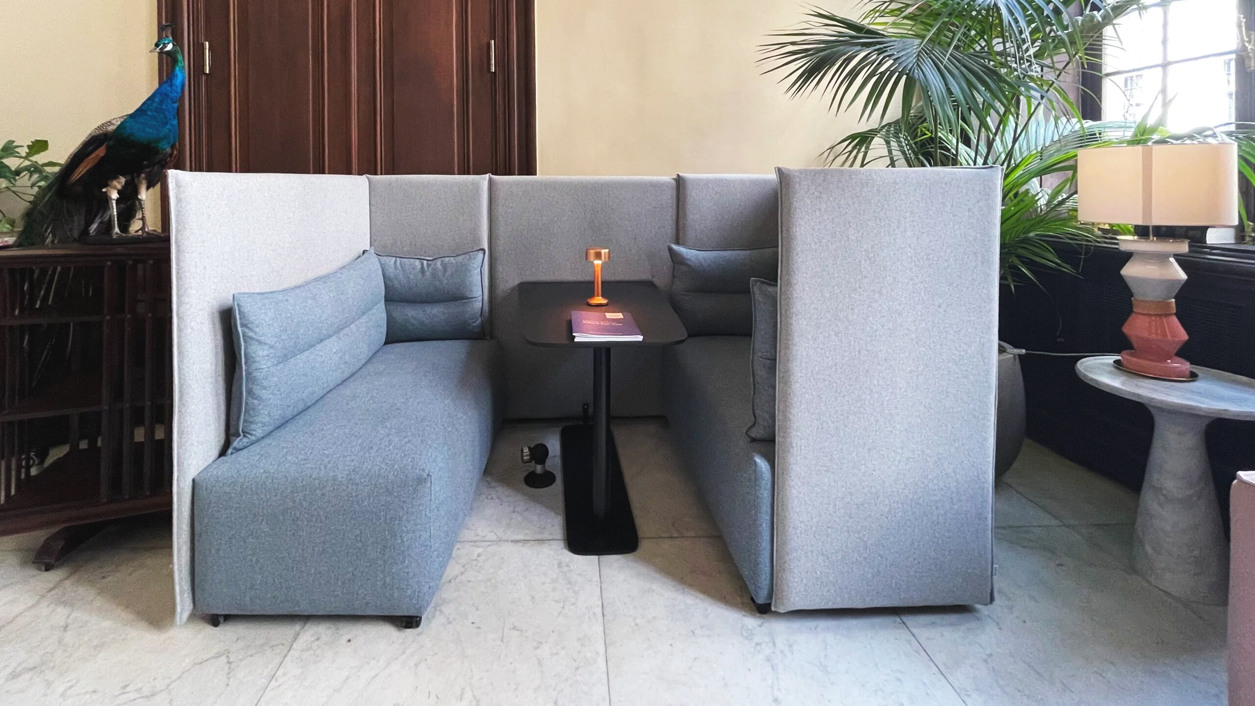 Wander Workbay – a cosy niche sofa that combines the comfort of a home sofa with the functionality of an office setting.