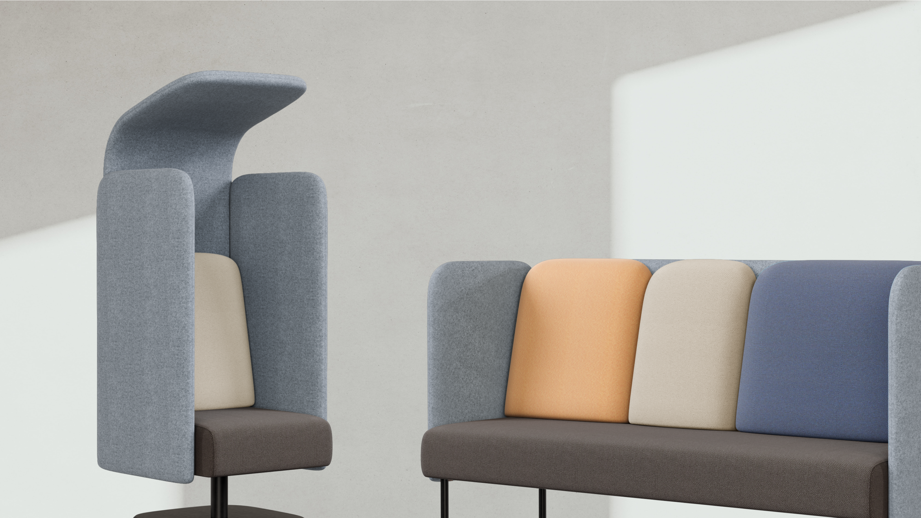 Intuit’s cover selection has been chosen based on our long-standing experience and understanding of what our clients like. Our recommended cover materials meet the elevated safety and durability requirements of open space furniture. Upon request, you can order also from a wider selection of cover materials.