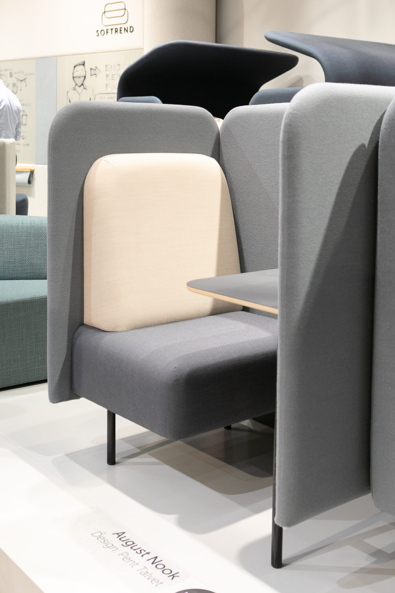 How do you provide a welcoming space for your hybrid workers? You need the compact 3-in-1 August Nook, with its built-in laptop size table, comfortable seat, and sound-absorbing screens.