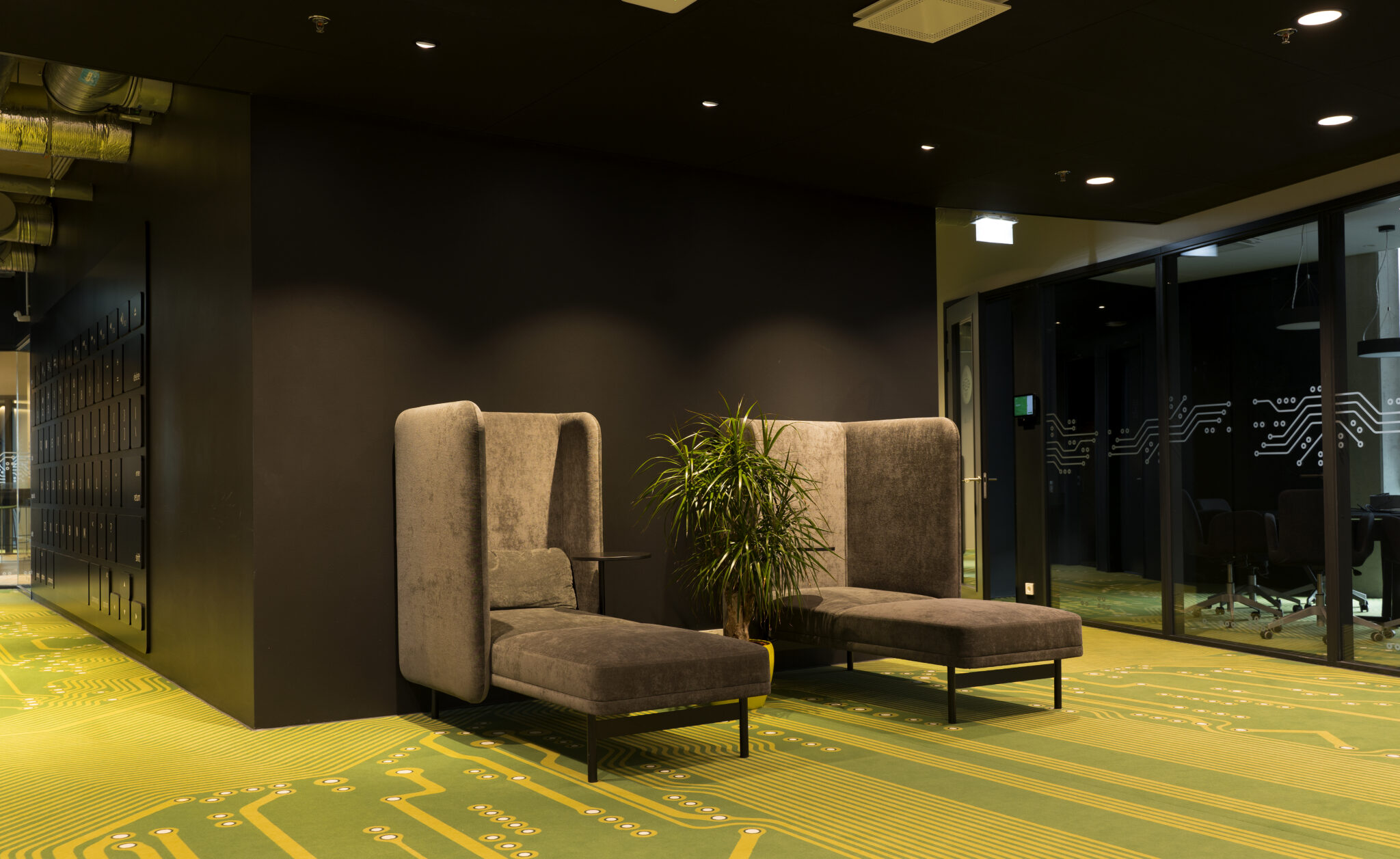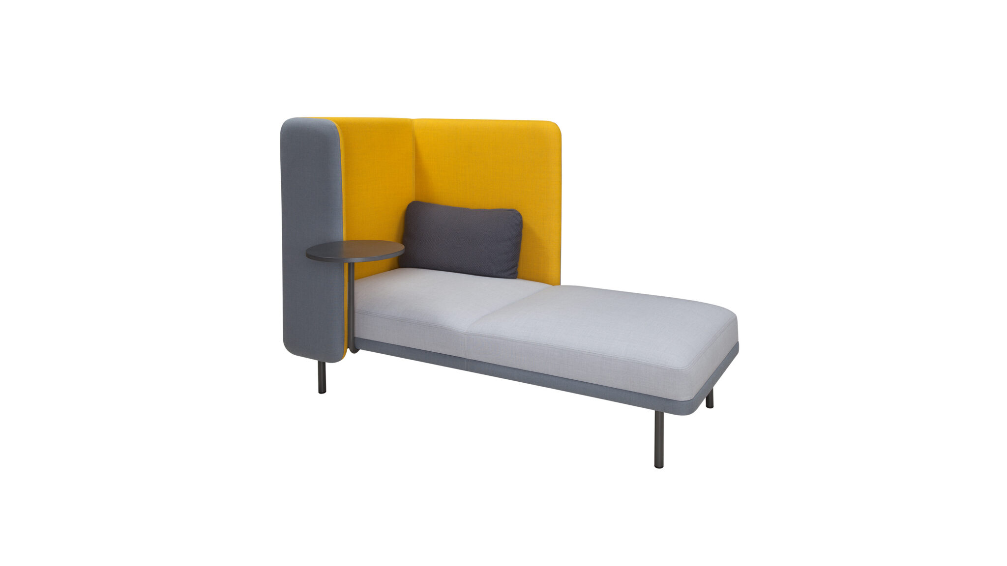 The slender and versatile Frankie embodies Intuit’s agile ethos. With options of a sofa, armchair, and extended bench your imagination is the only limit. The set includes moving tables: a smaller one with space for a computer, mug or magazine and a larger one in which there are power sockets for charging devices.