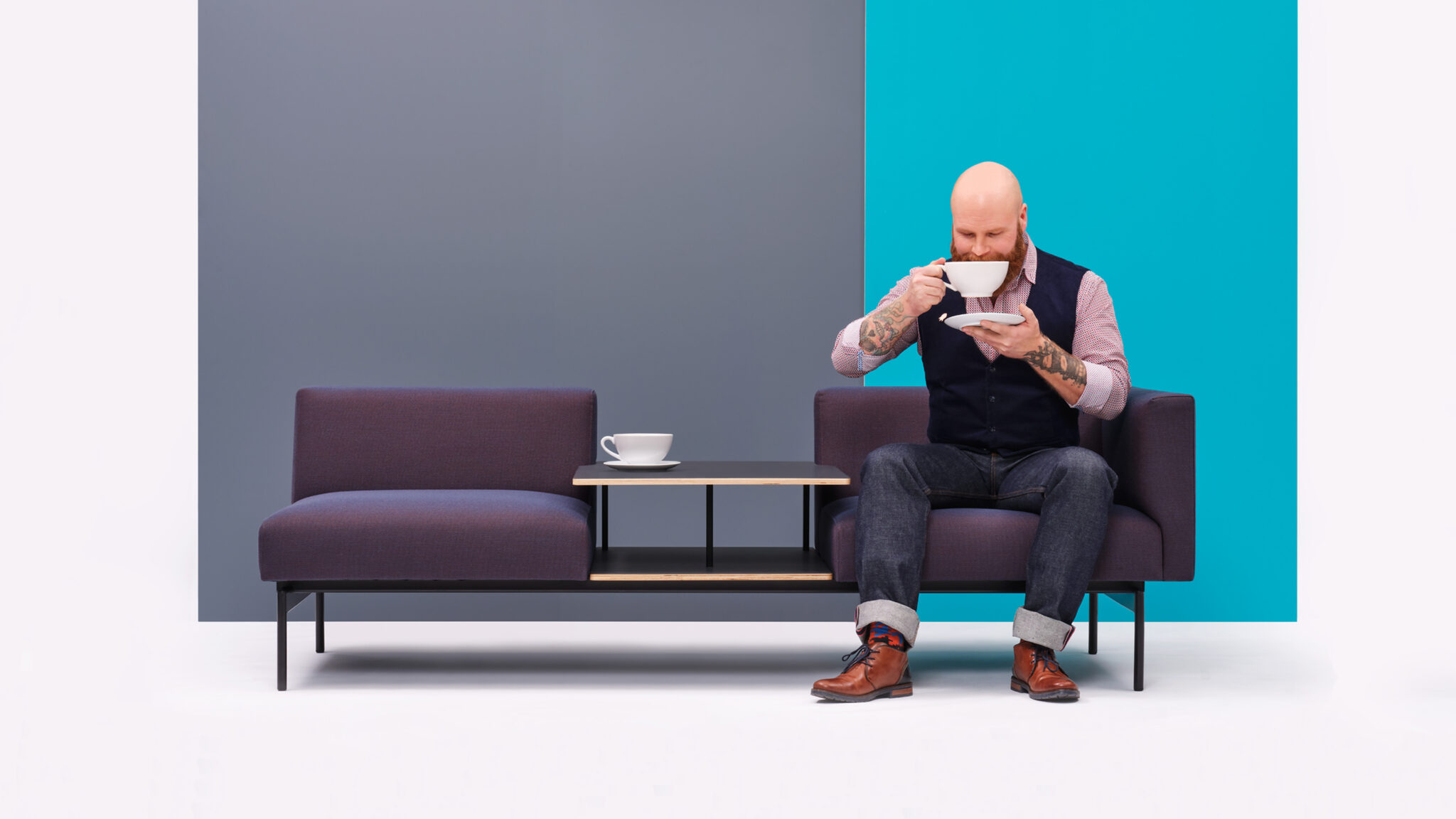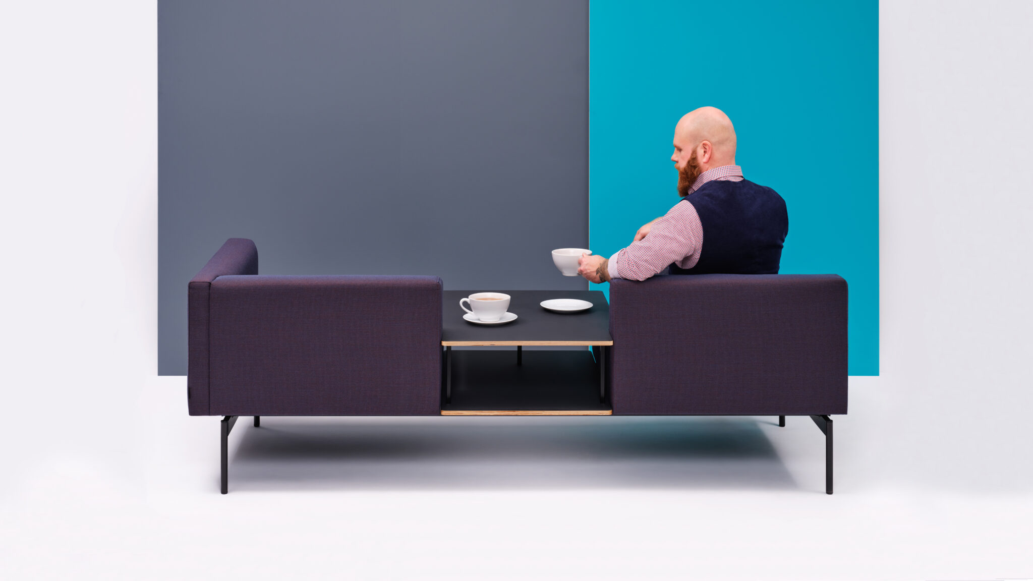 Comfortable and practical for a communal space, the Sans is available as a classic sofa, or with an integral table. Pop down your coffee cup, lean back, and enjoy the clean lines and sociable layout.