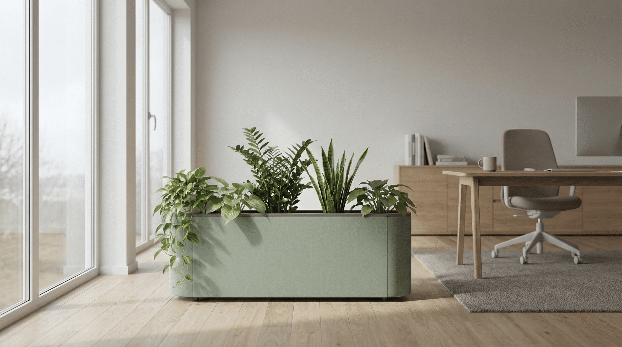 Adding greenery to a space enhances overall wellbeing and helps boost productivity. Use the practical Sprout space divider, which lets you grow suitable plants right inside it.