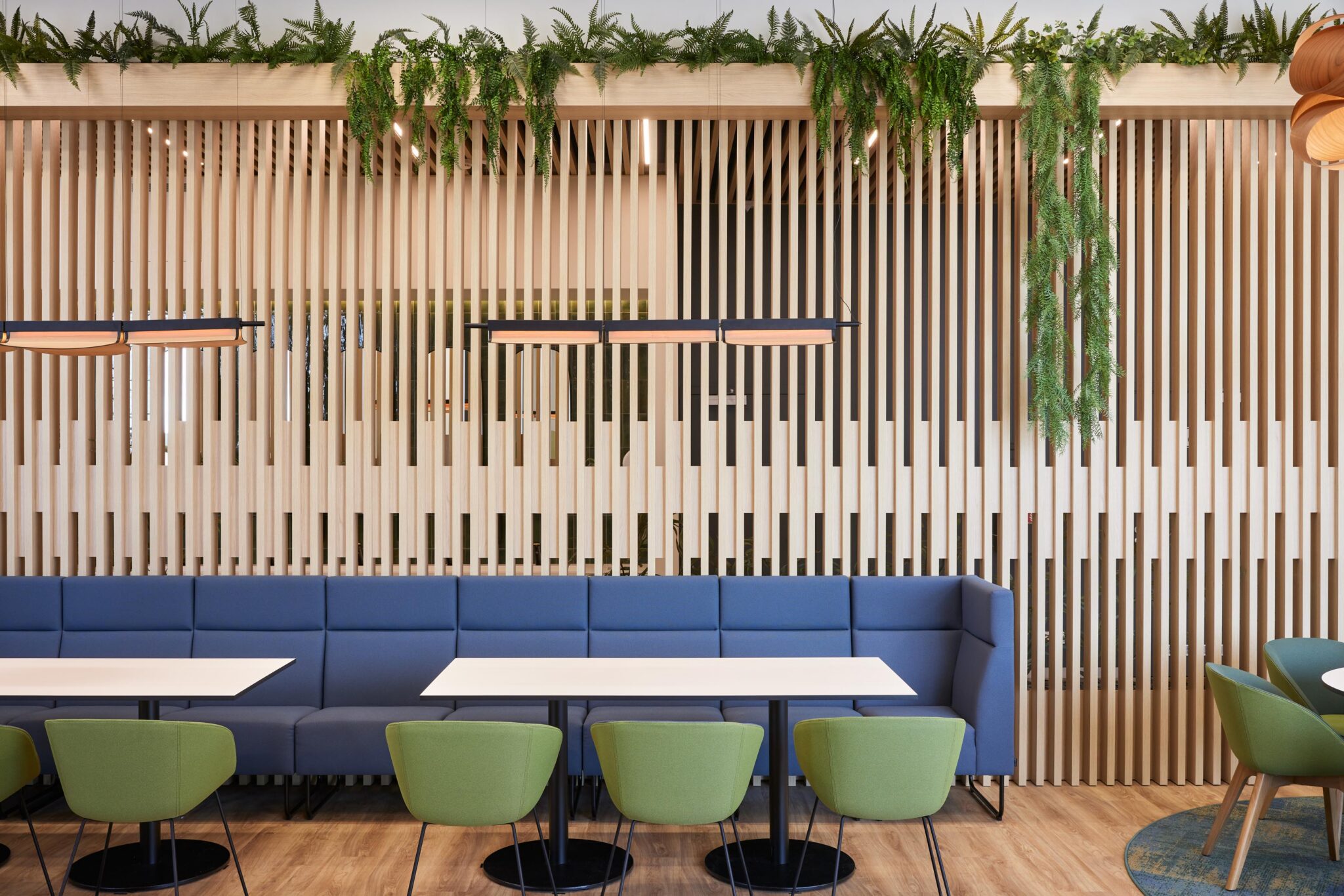 Featuring comfortable sofas and armchairs paired with coffee tables, the coffee lounge is designed for leisurely team meetings, socializing, and energizing.